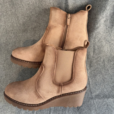 Stivaletti beige con zeppa – modello Chelsea con zip laterale