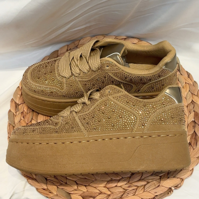 Scarpe zeppa oro con strass