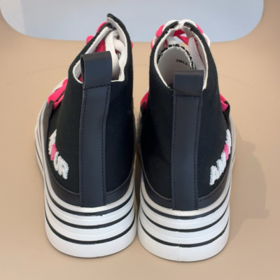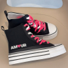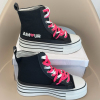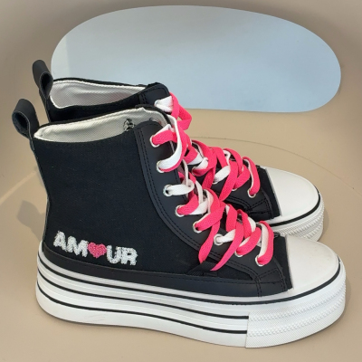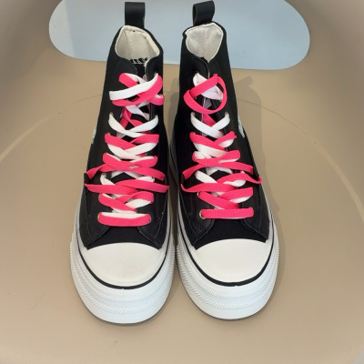 Scarpe alte nere,con lacci di doppio colore .